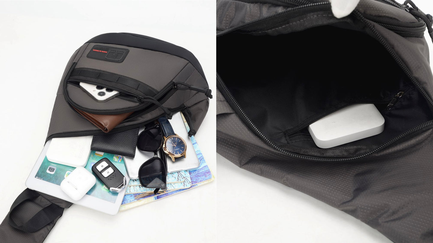 Crafted with lightweight waterproof fabrics and scratch-resistant materials, this sling bag offers reliable protection against light rain and incidental scratches.