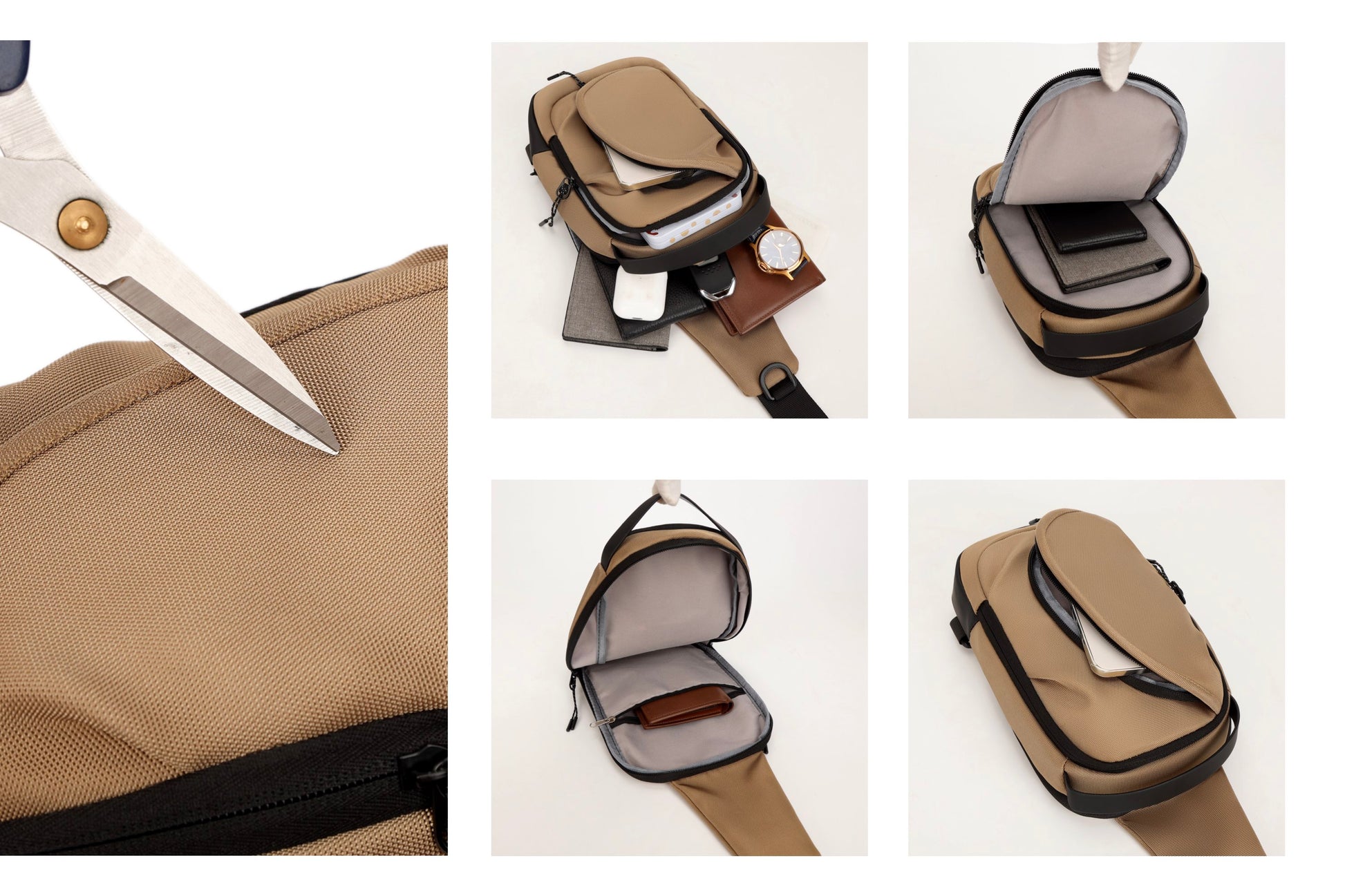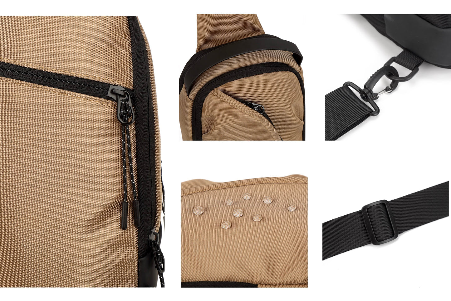 Crafted with lightweight waterproof fabrics and scratch-resistant materials, this sling bag offers reliable protection against light rain and incidental scratches.