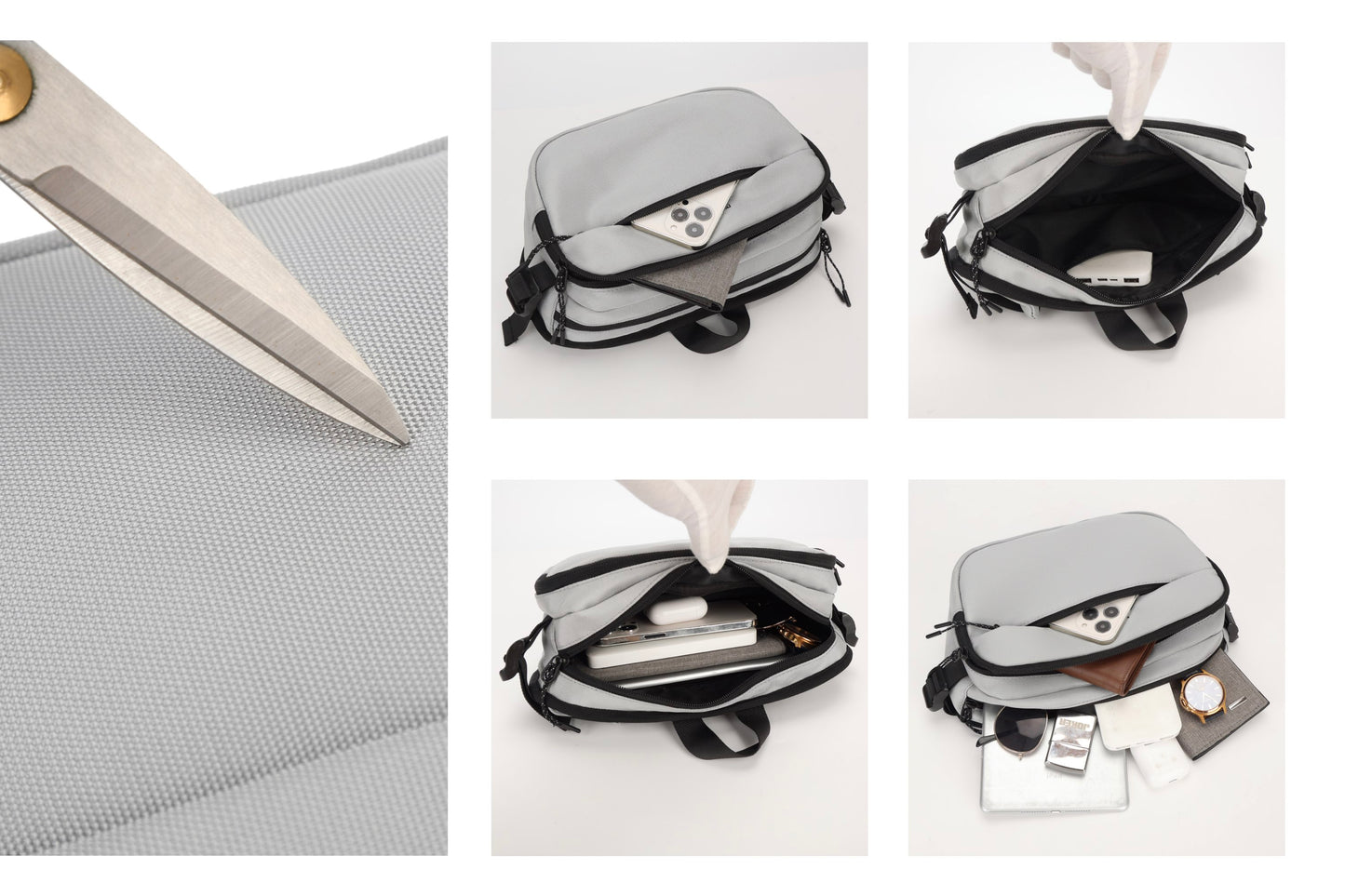 Crafted with lightweight waterproof fabrics and scratch-resistant materials, this sling bag offers reliable protection against light rain and incidental scratches.