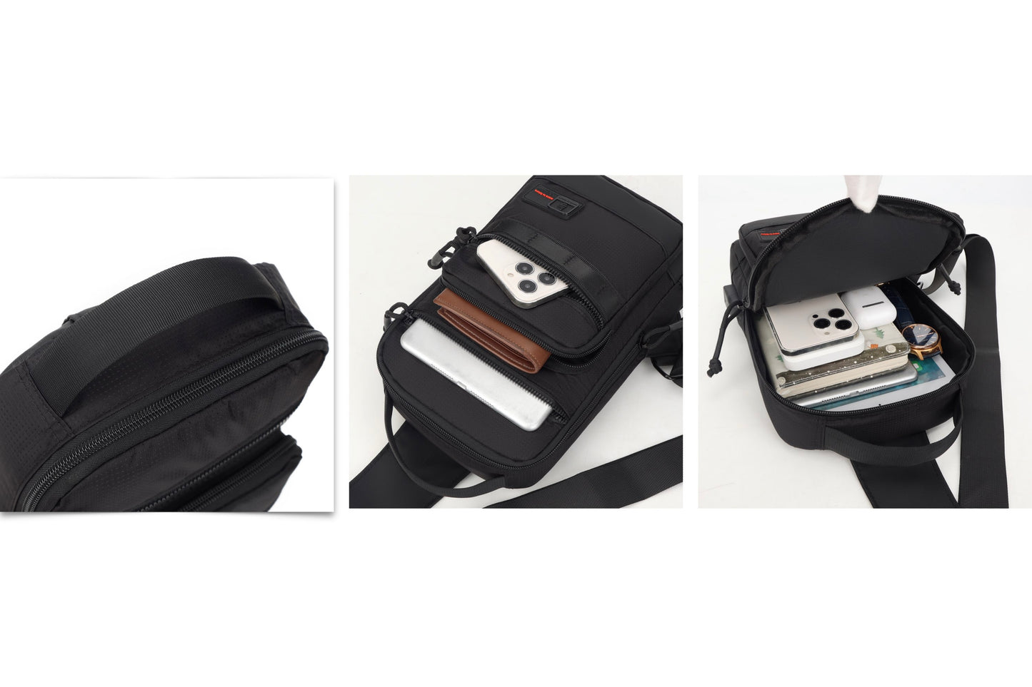 Crafted with lightweight waterproof fabrics and scratch-resistant materials, this sling bag offers reliable protection against light rain and incidental scratches.