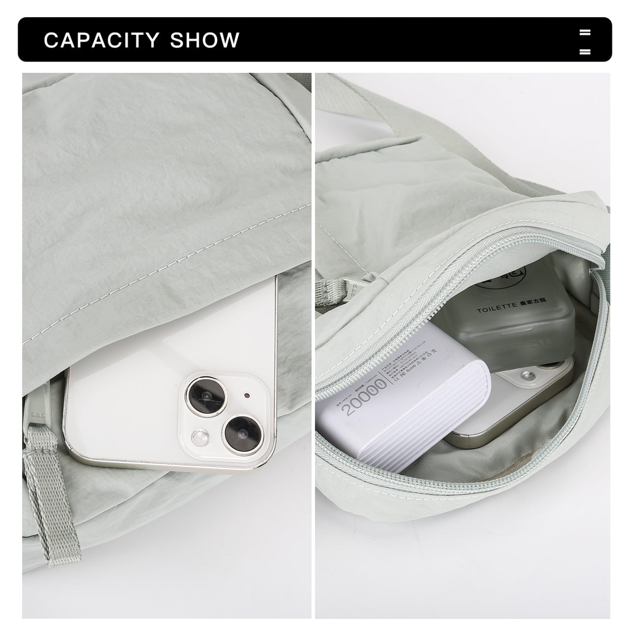 Featuring a generously sized main compartment, ensuring ample space for iPhone, they accommodate daily essentials, tech gadgets, and so on. Additionally,a front zipped pocket conveniently store keys, cell phones, and other small items, aiding in efficient organization of your belongings.