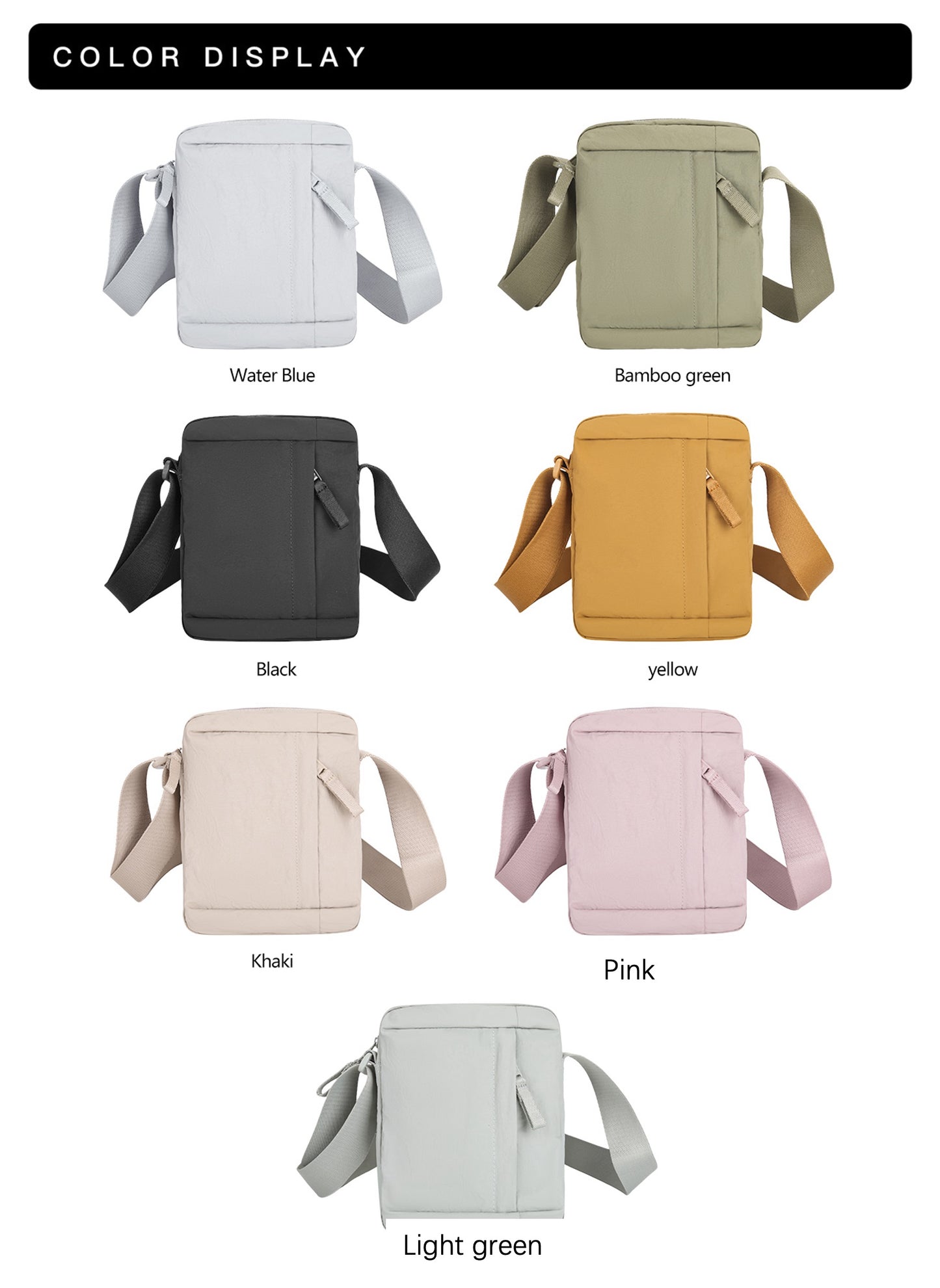 Colors: 7 colors Choices (Black, Blue, Yellow, Bamboo Green, Pink, Light Green, Khaki)