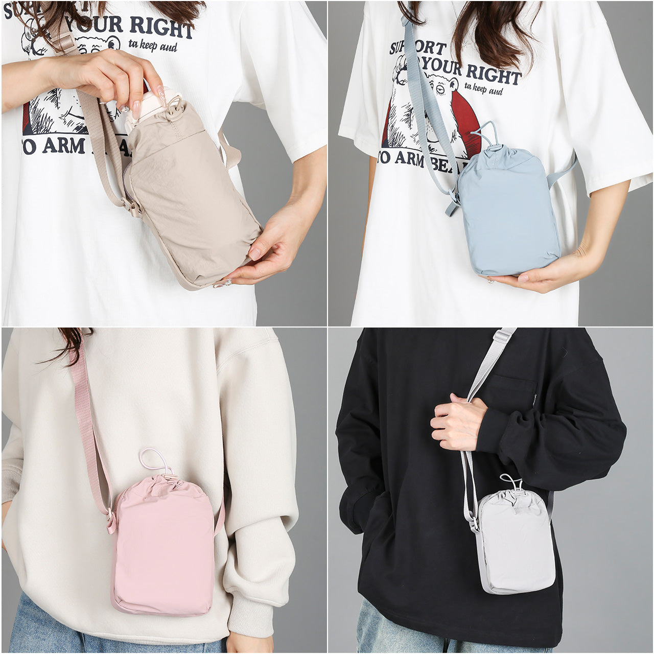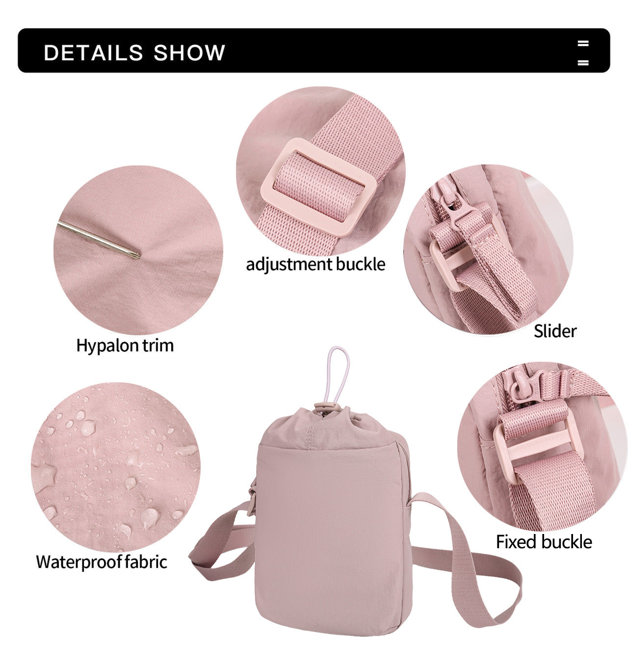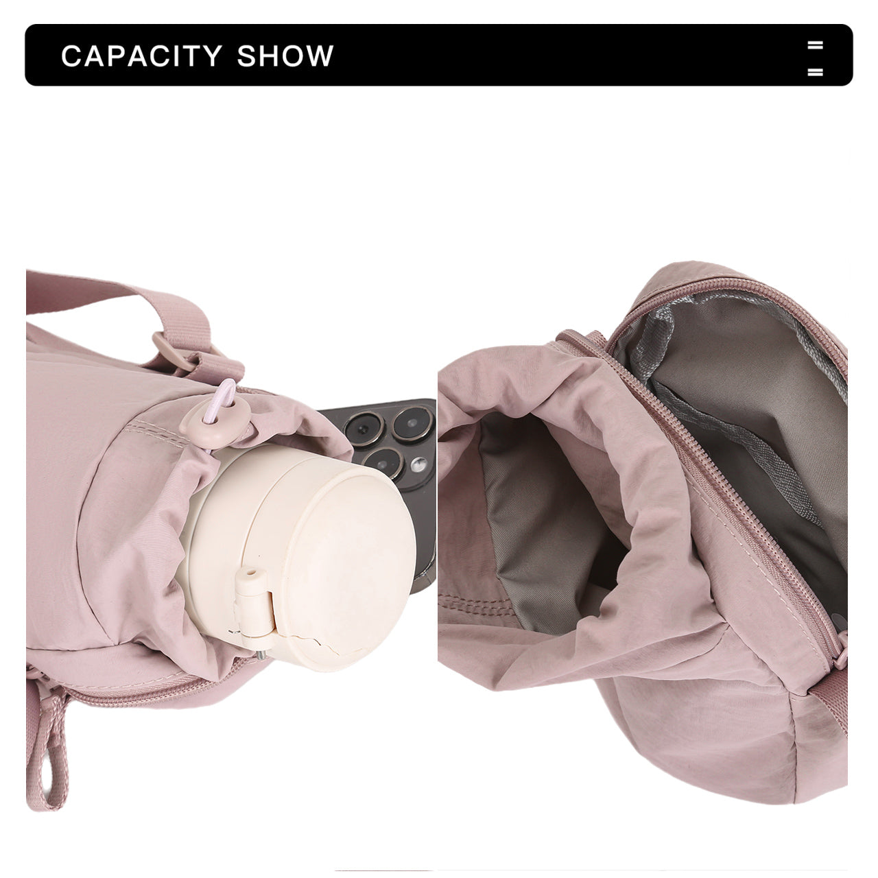 Featuring a generously sized main compartment, ensuring ample space for iPhone, they accommodate daily essentials, tech gadgets, and so on. Additionally, a front compartment conveniently store water bottles, umbrella and other small items, aiding in efficient organization of your belongings.