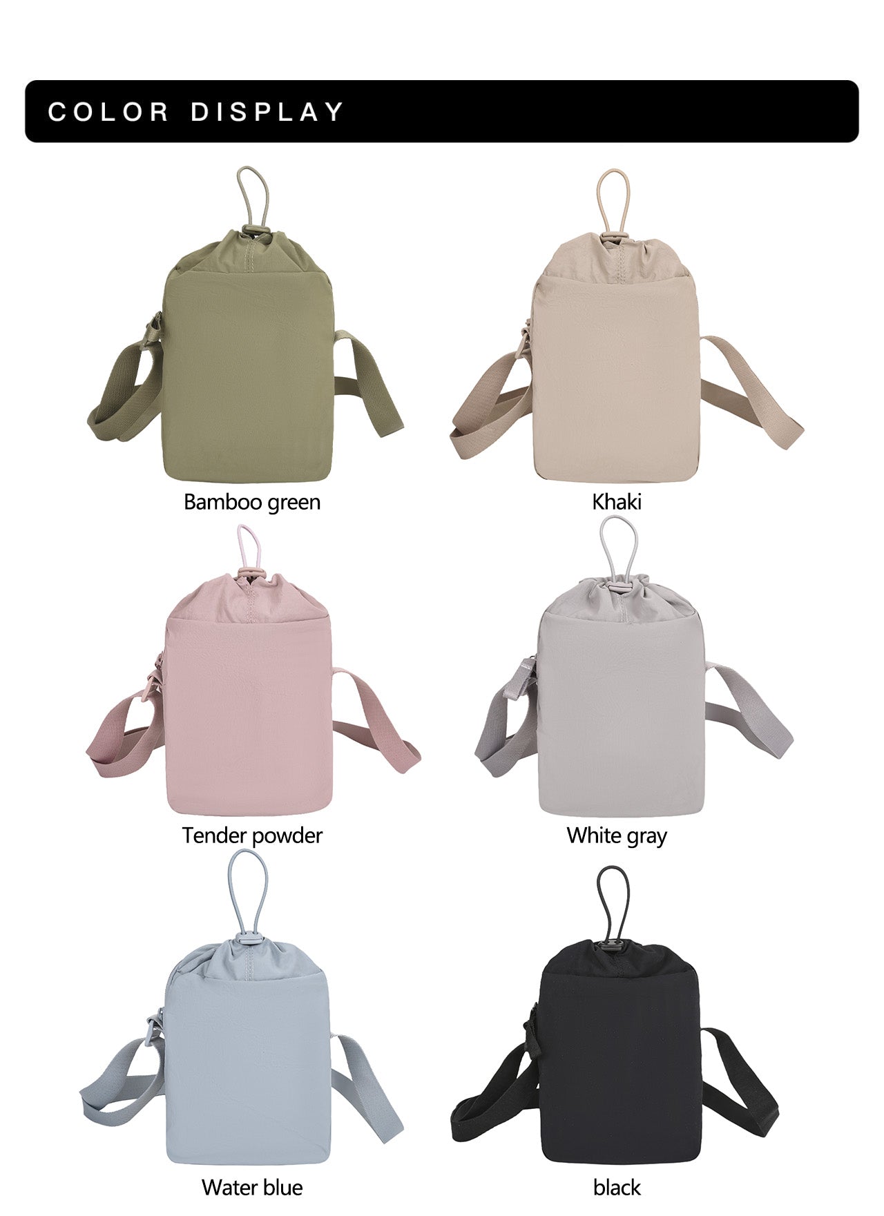 Colors: 6 colors choices (Black, Blue, Bamboo Green, Pink, Light Gray, Khaki)
