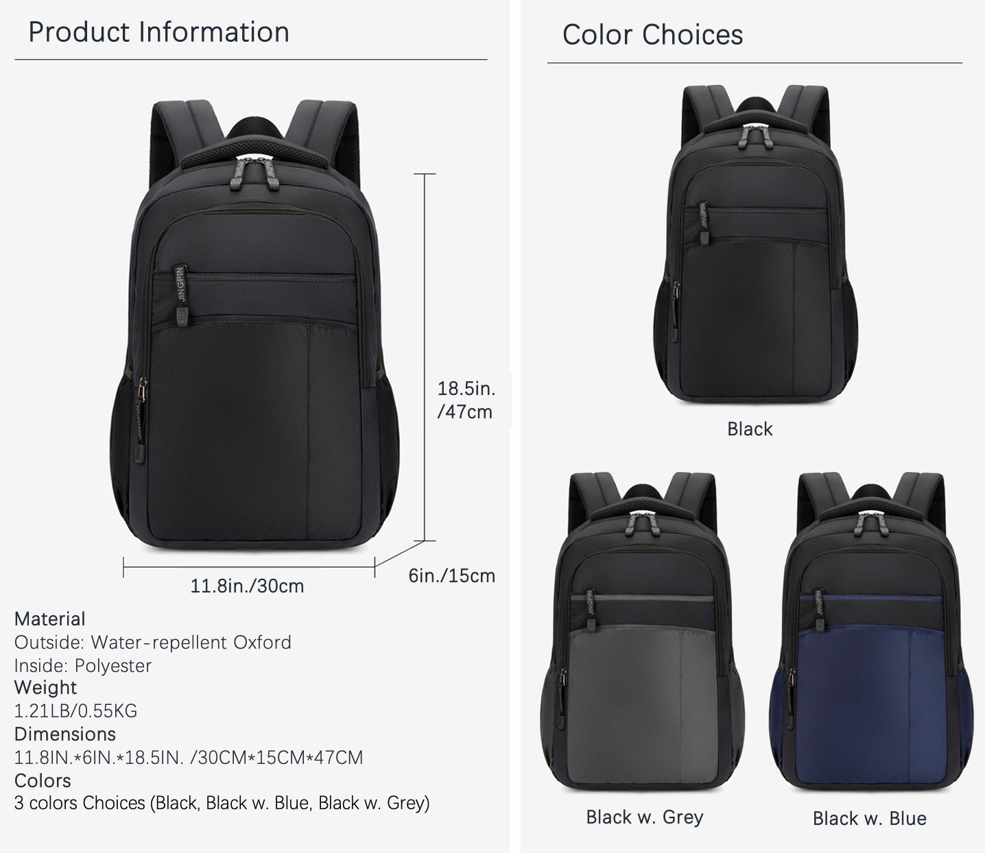 Designed for men come equipped with a distinct laptop compartment, ensuring ample space for laptops ranging from 13 inches to 15.6 inches. Featuring a generously sized main compartment, they accommodate daily essentials, tech gadgets, and travel necessities. Additionally, a front pocket compartment conveniently stores keys, cell phones, and other small items, while a zippered pocket offers swift access. Side mesh pockets are designed to hold water bottles and umbrellas, aiding in efficient organization of your belongings.