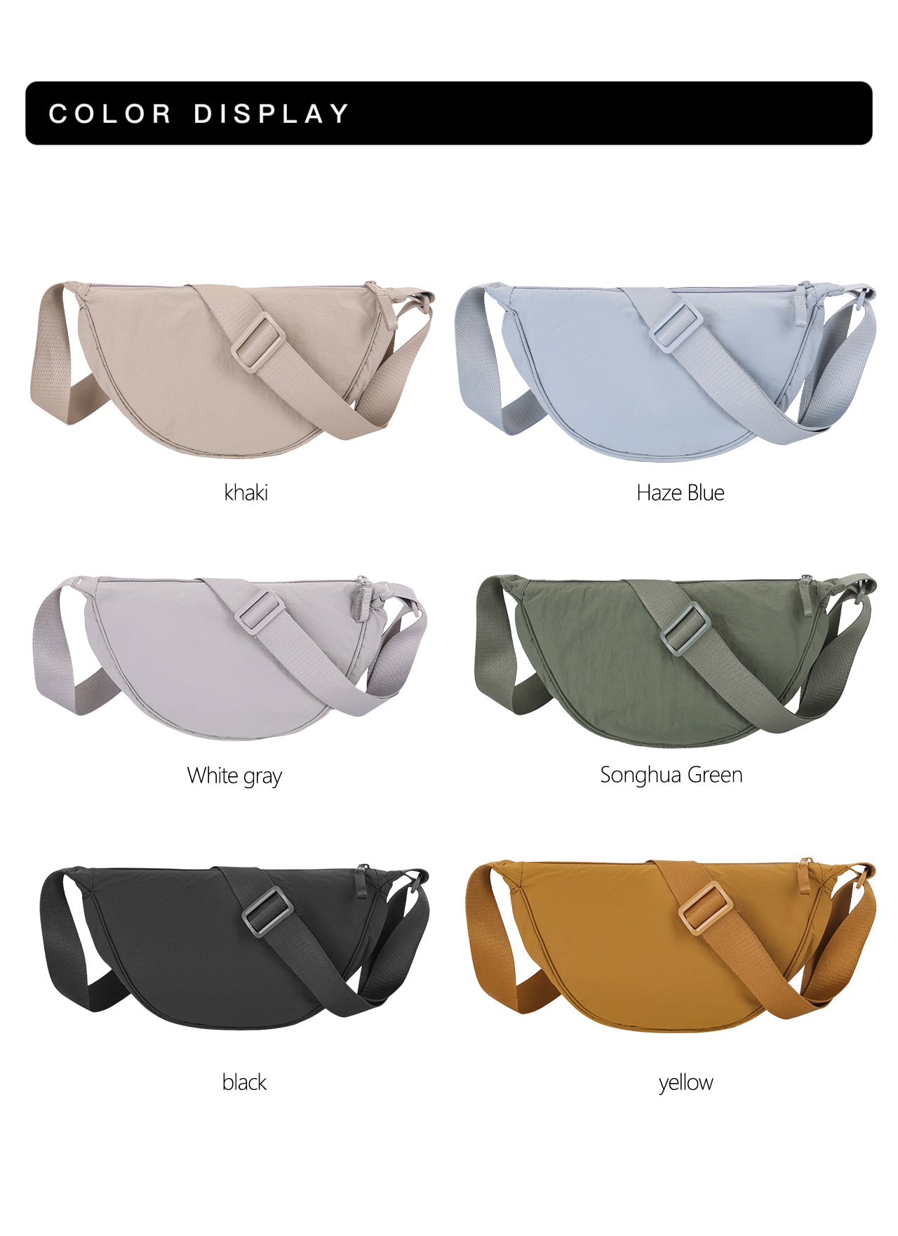 Colors: 6 colors choices (Black, Blue, Green, Gray, Khaki, Yellow)