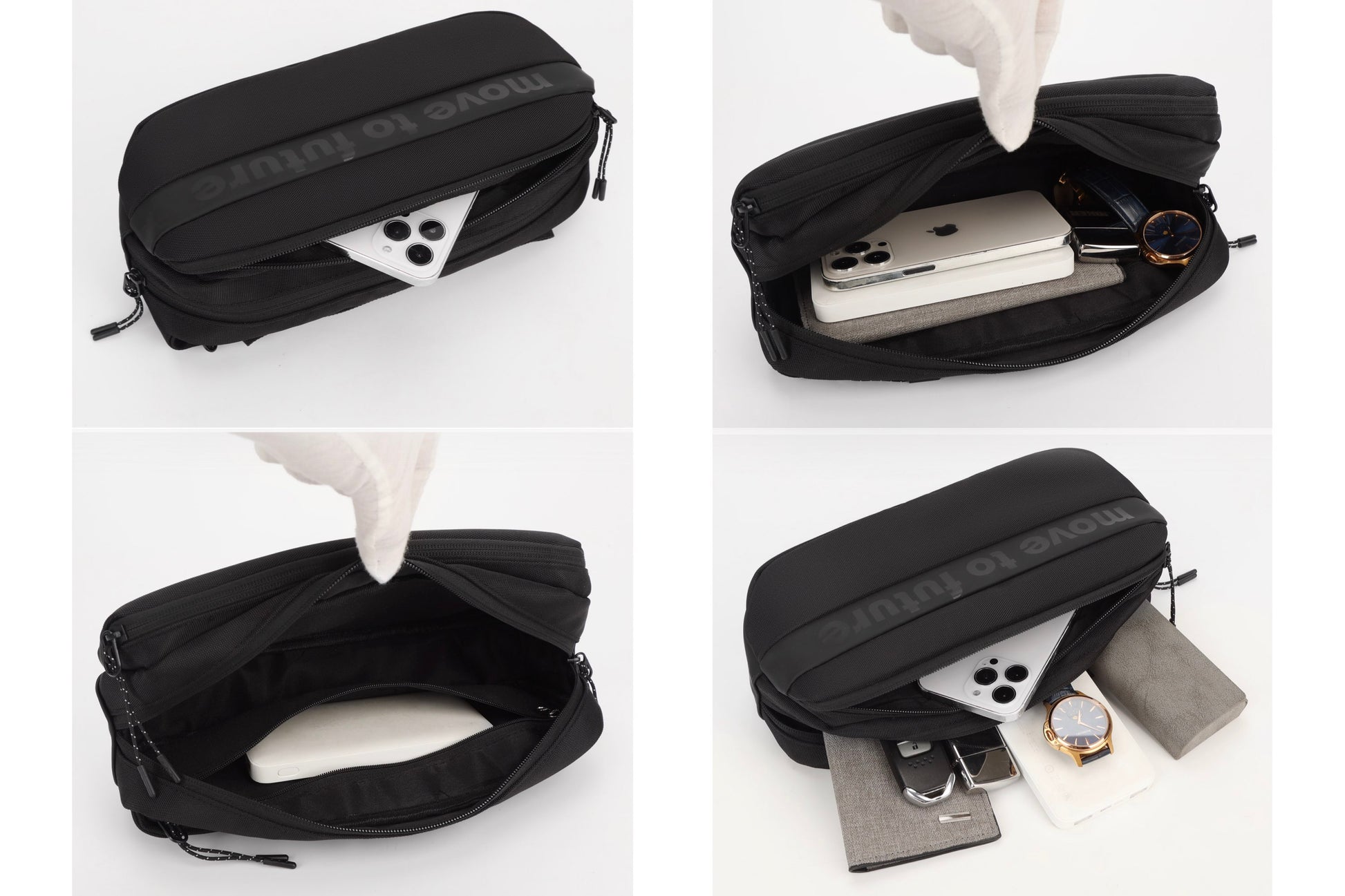 Crafted with lightweight waterproof fabrics and scratch-resistant materials, this sling bag offers reliable protection against light rain and incidental scratches.