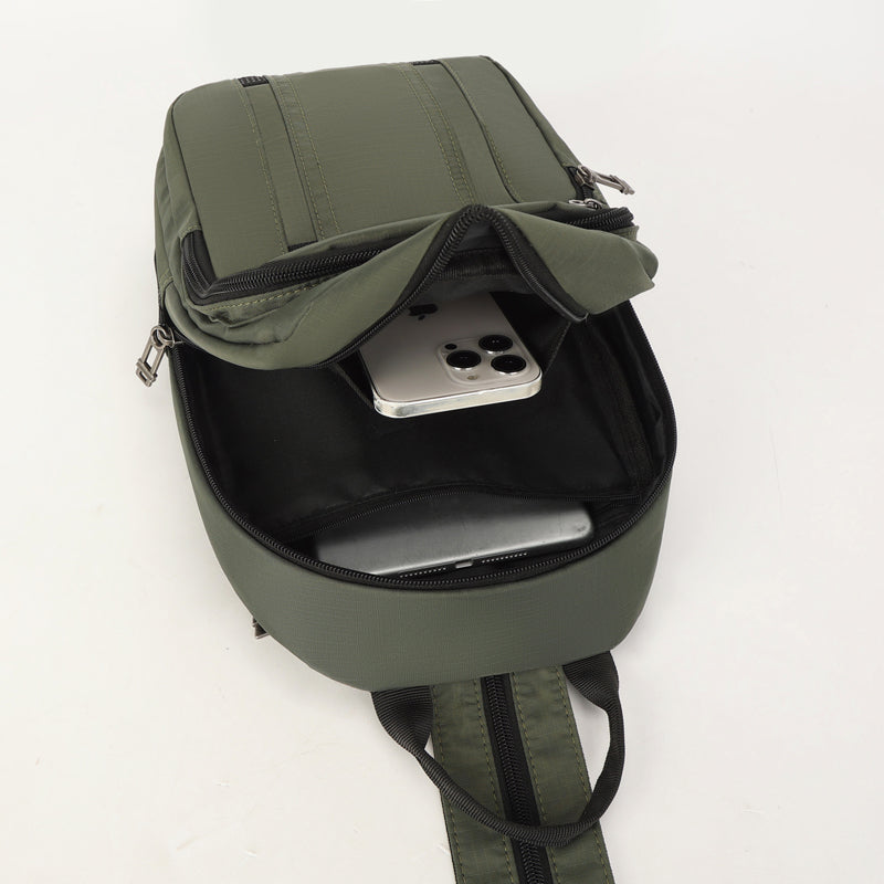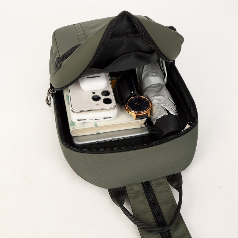 Crafted with lightweight waterproof fabrics and scratch-resistant materials, this sling bag offers reliable protection against light rain and incidental scratches.