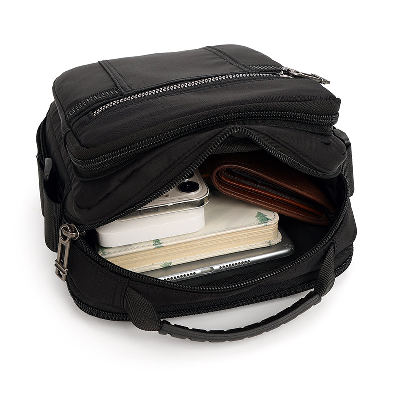 Crafted with lightweight waterproof fabrics and scratch-resistant materials, this sling bag offers reliable protection against light rain and incidental scratches.