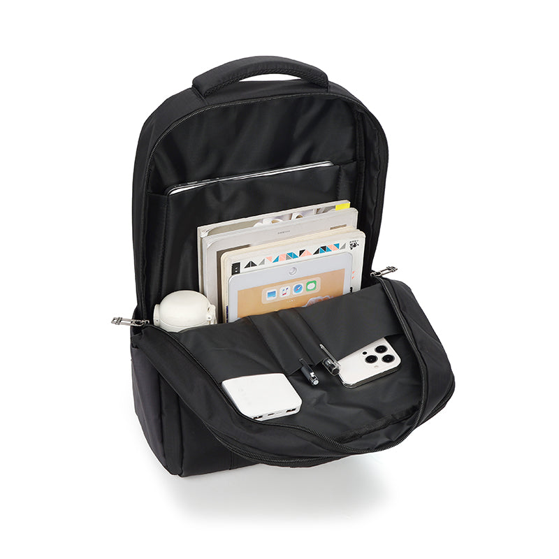 The breathable padding mesh back panel in this computer rucksack design facilitates ventilation, air convection, and heat dissipation. Its comfortable, wide, and breathable mesh shoulder straps, coupled with ample sponge pads, alleviate shoulder pressure. Additionally, reinforced padded top handles ensure easy and comfortable carrying.