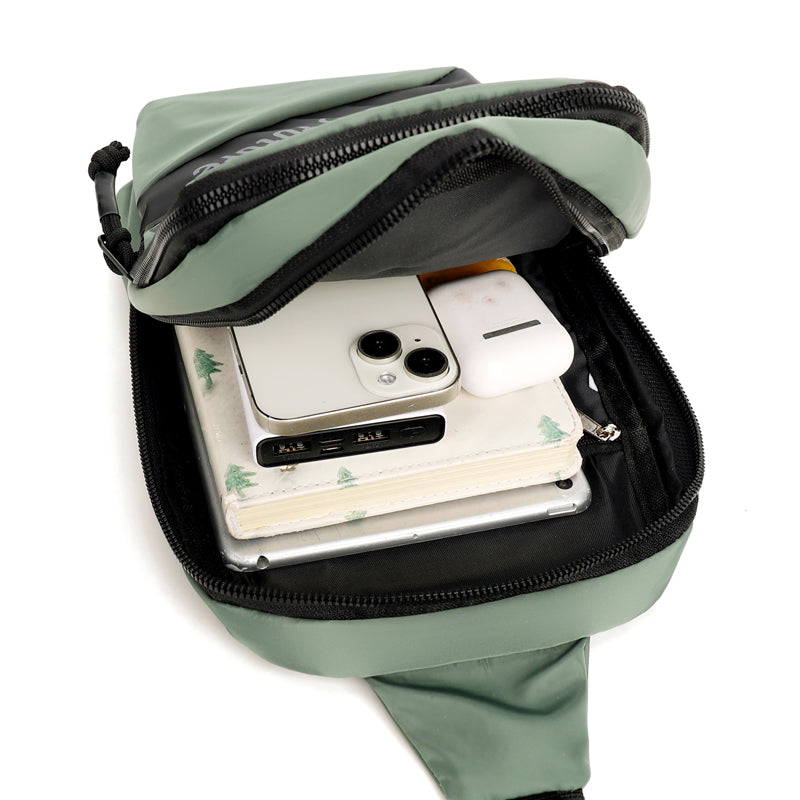 Crafted with lightweight waterproof fabrics and scratch-resistant materials, this sling bag offers reliable protection against light rain and incidental scratches.