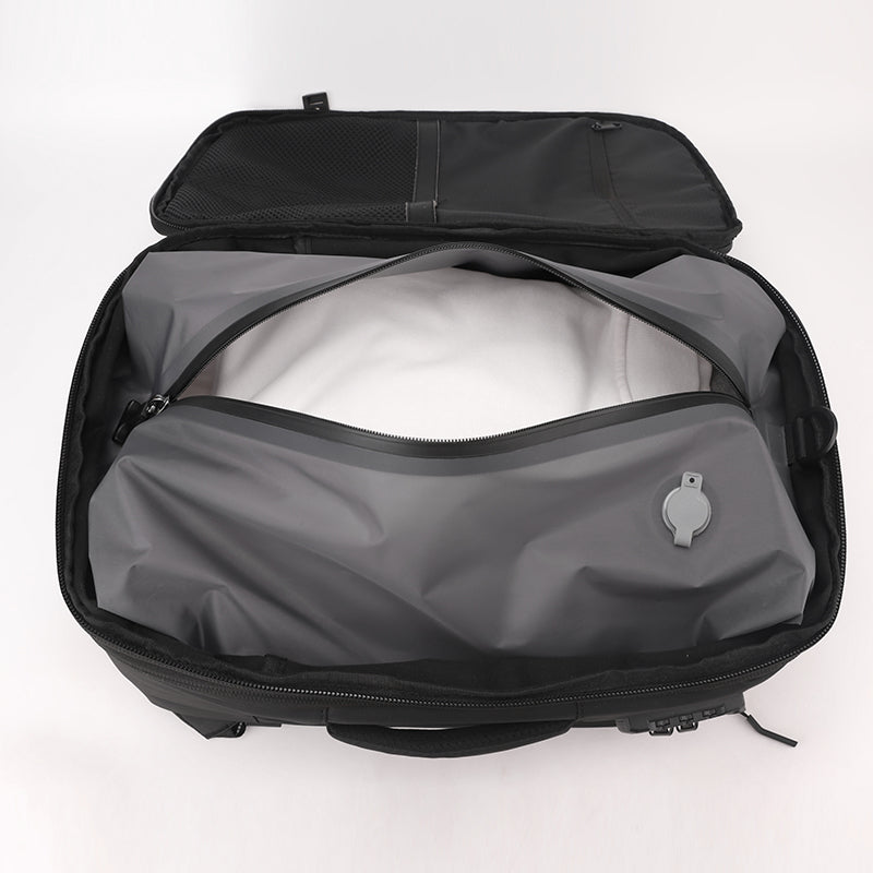 This compressor backpack revolutionizes travel by combining two essential items into one. No more carrying separate compression cube backpack accessories or bulky compression bags for backpacking.
